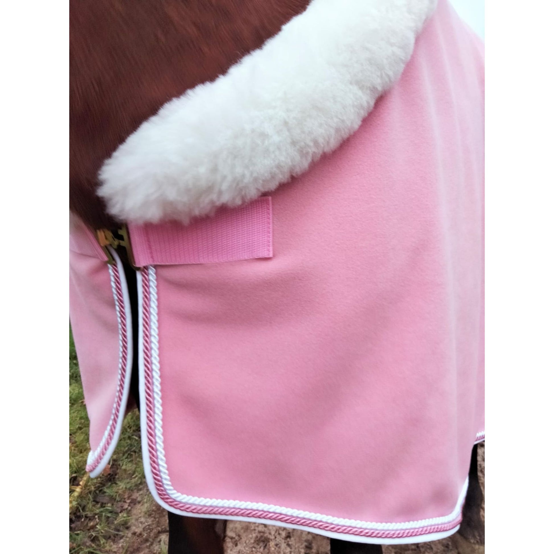 Luxe zweetdeken van premium fleece en een wollen bontrand bij de hals.